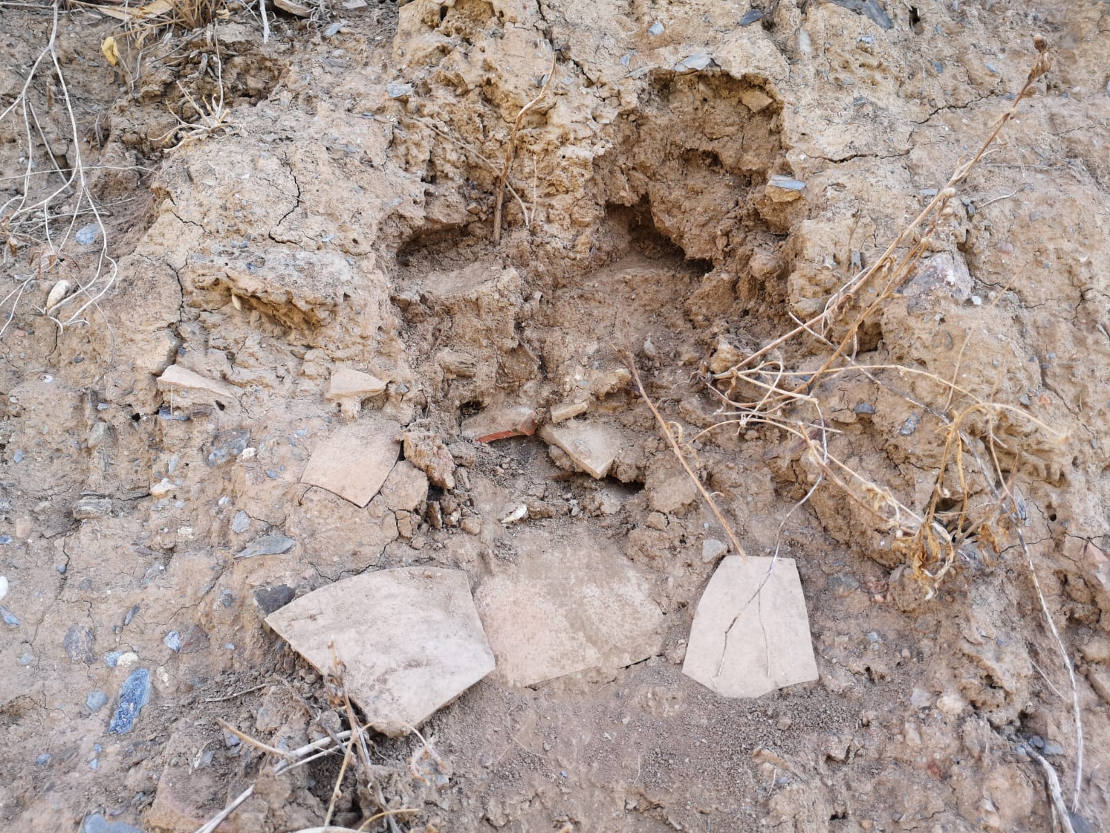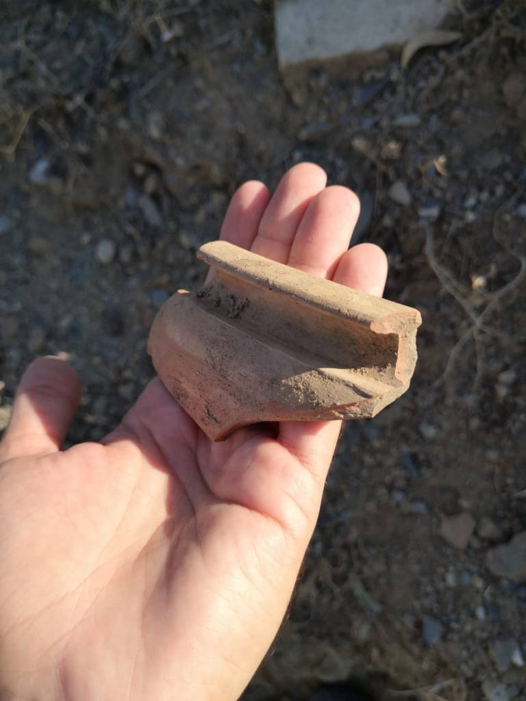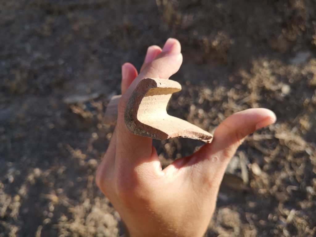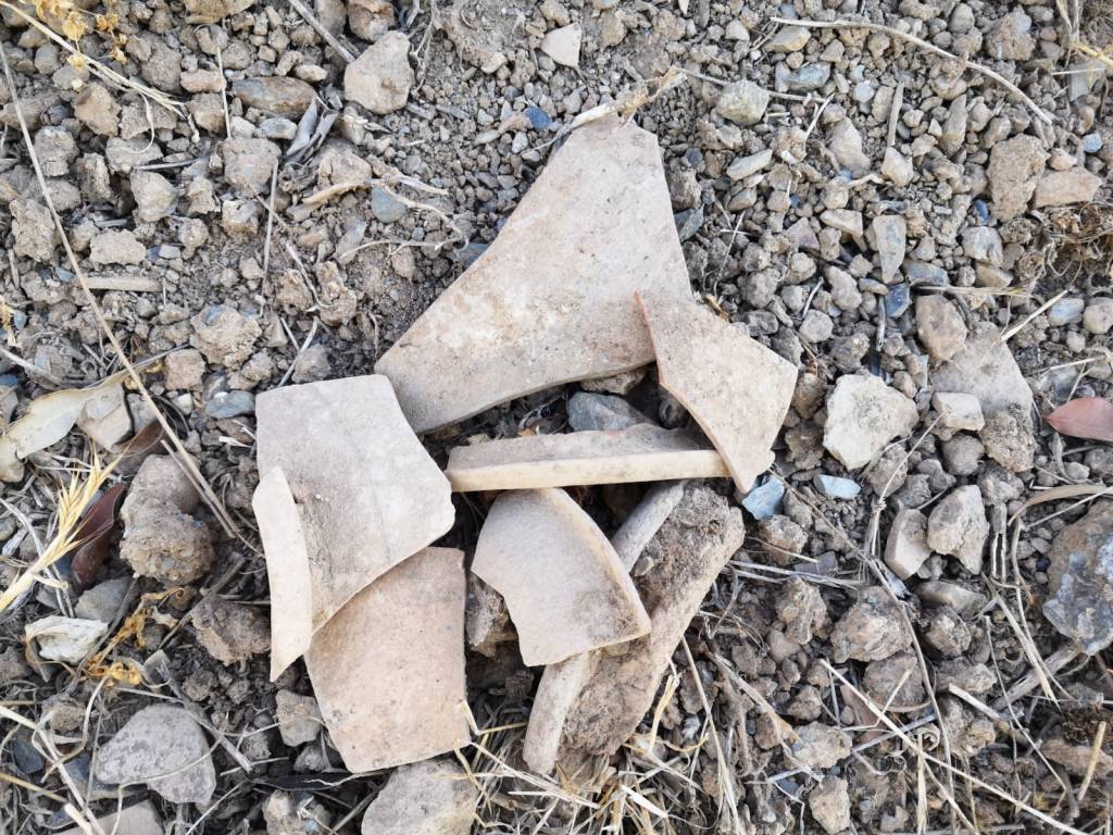 Una vez en el yacimiento nos encontramos multitud de fragmentos nada más llegar, de excelente factura y de todas formas y tamaños, desperdigados por todas partes al haberse desprendido desde el talud donde se encuentra el alfar e integrados en el talud de la excavación. Un patrimonio de todos dejado a merced del tiempo y de todo tipo de actos vandálicos.