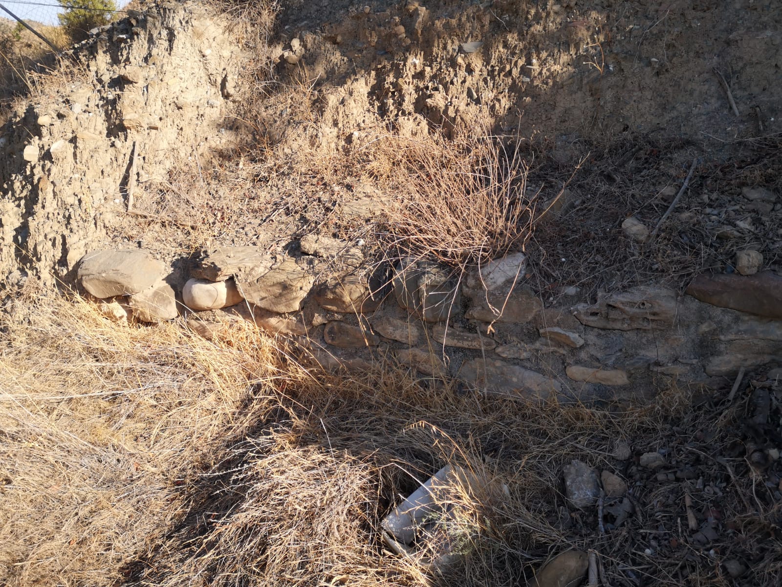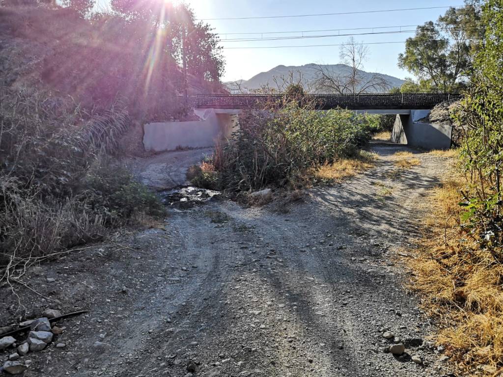 Como podemos ver, el primer problema que nos encontramos para poder acceder al yacimiento es la presencia de abundante maleza en todo el curso del arroyo, con las consecuencias nefastas que tiene para las posibles avenidas de aguas torrenciales que, cada vez, son más frecuentes en las regiones de clima mediterráneo debido a la cada vez más frecuente llegada de fenómenos de DANA. Este problema no solamente afecta al yacimiento, sino a los vecinos de la zona que, aunque escasos, pagan igualmente sus impuestos y ven cómo sus contribuciones se ven retribuidas con esta dejadez absoluta.