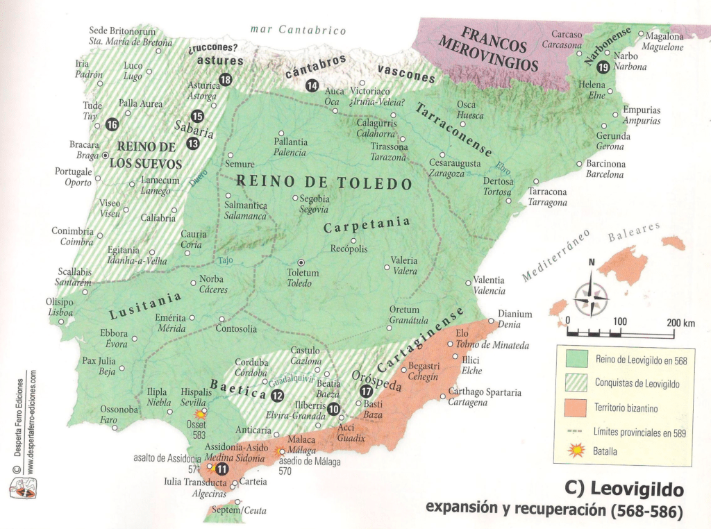 Francos presionando por el norte, suevos siempre oportunistas y ávidos de expansión por el noroeste, ricas regiones autónomas por el sur y bizantinos afincados en el Levante español también atentos a cualquier debilidad para acabar con ellos, el contexto en el que los godos se desenvuelven en Hispania era tremendamente complejo y, tal y como menciona el autor, bastaban algunos errores, alguna debilidad específica y el reino godo —hereje por cierto, ya que la fe que profesaban los godos era la arriana mientras que tanto suevos como francos ya habían adoptado la católica— desaparecería por completo.